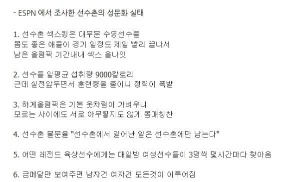ESPN에서 조사한 선수촌의 성문화 실태