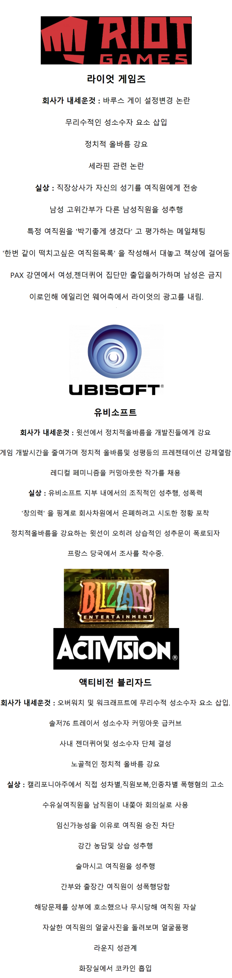 최근에 문제생긴 해외 게임회사 정리