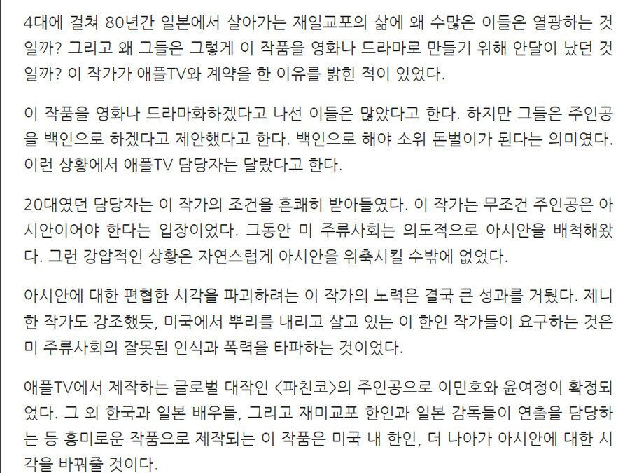 드라마 '파친코'를 애플TV에서 만든 이유