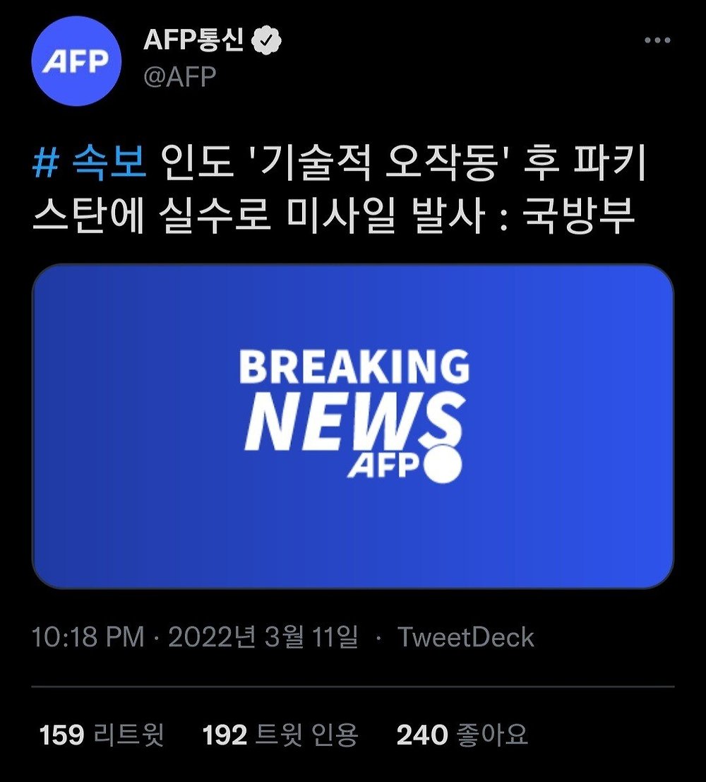 속보) 인도 파키스탄에 미사일 발사 ㄷㄷ
