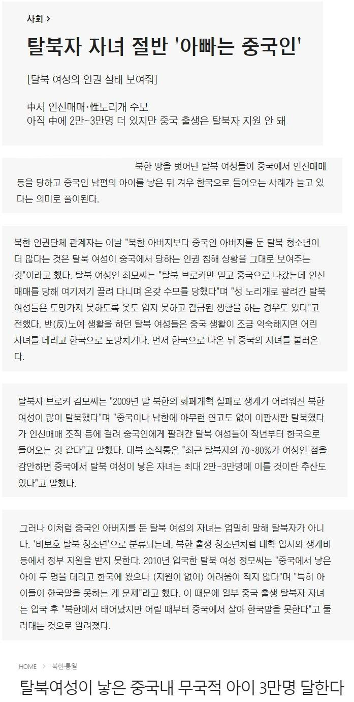 탈북자 자녀의 절반