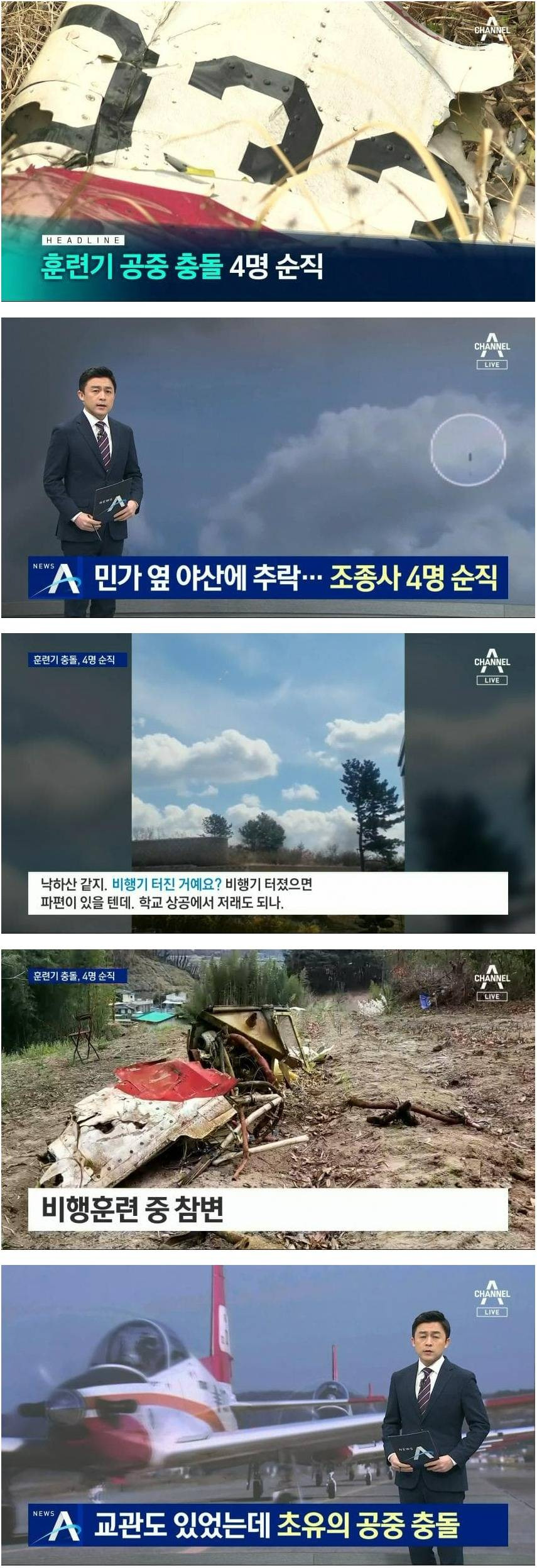 훈련기 공중 충돌 조종사 4명 순직