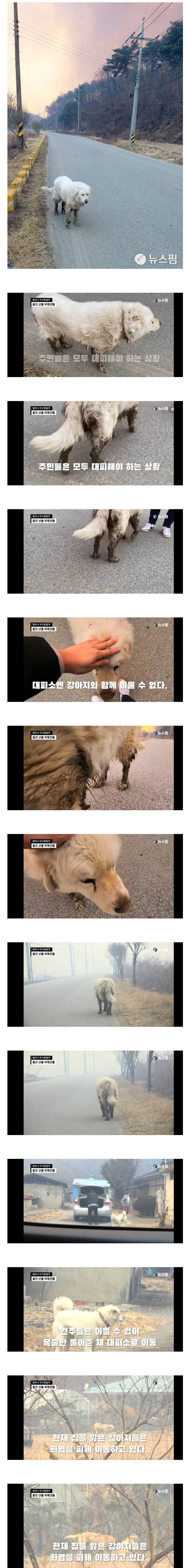 목줄 풀린 채 산불 피하는 울진 강아지들