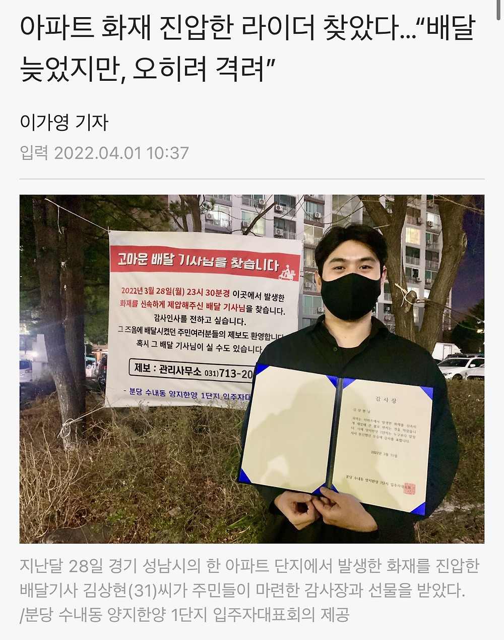 아파트 화재 진압하고 홀연히 떠난 라이더