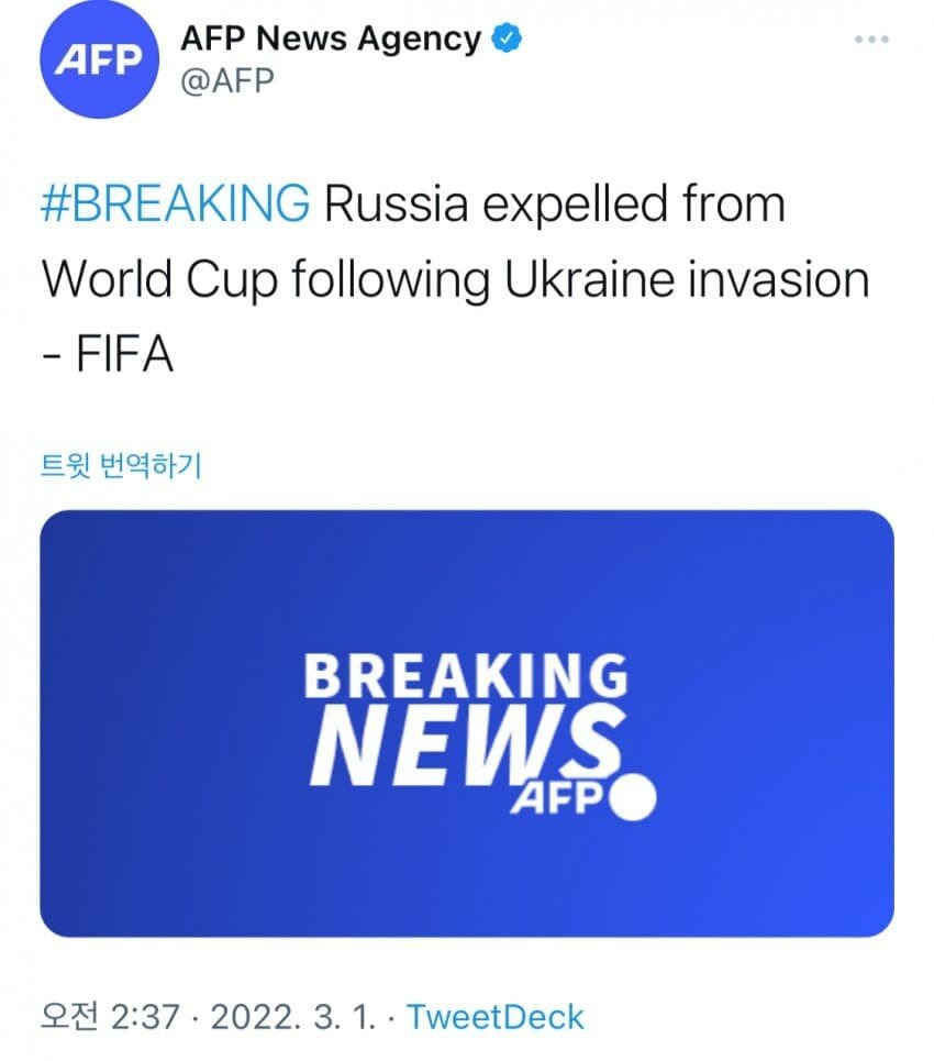 [속보] 러시아, 월드컵에서 퇴출 ㄷㄷ
