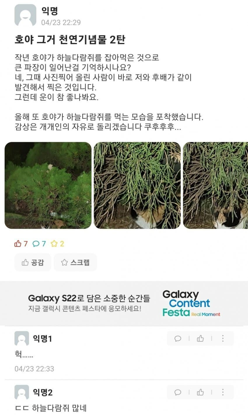 하늘다람쥐, 또 사냥한 경북대 고양이
