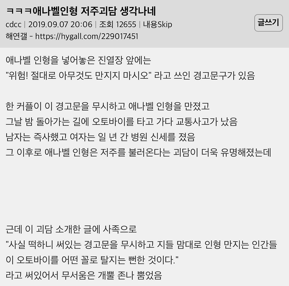애나벨 저주 인형 괴담의 진실