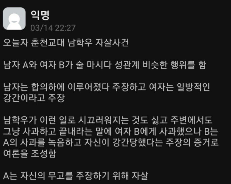 어제자 춘천교대 자살사건