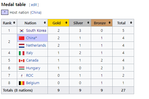 [오피셜] 대한민국 베이징 올림픽 쇼트트랙 부문 1위로 마무리