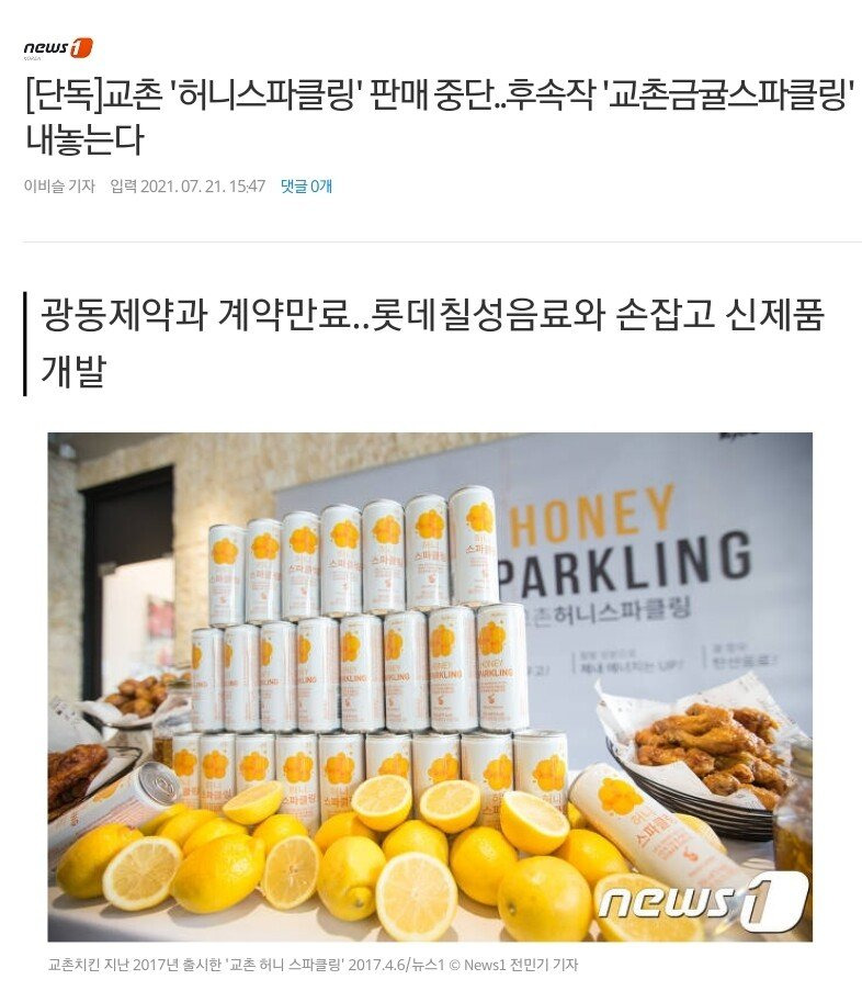 교촌 허니스파클링 판매 중단 소식