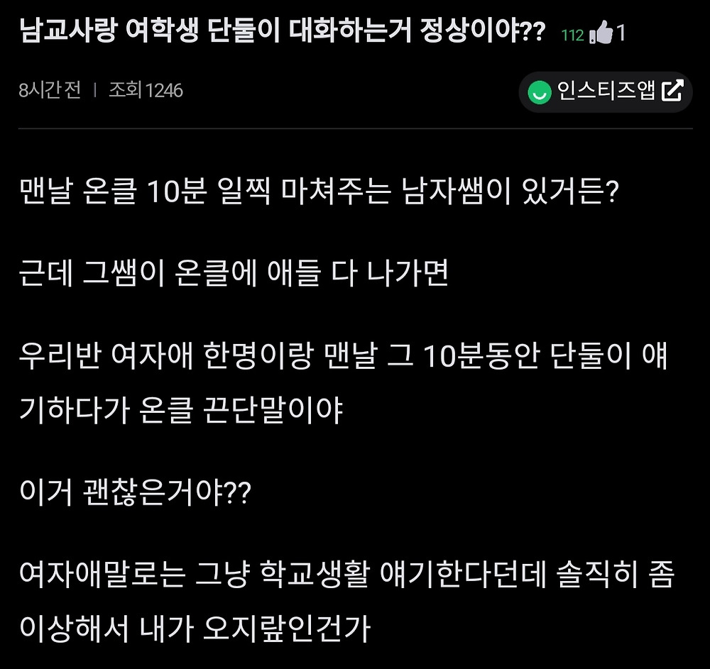 남교사랑 여학생 단둘이 대화하는거 정상이야??