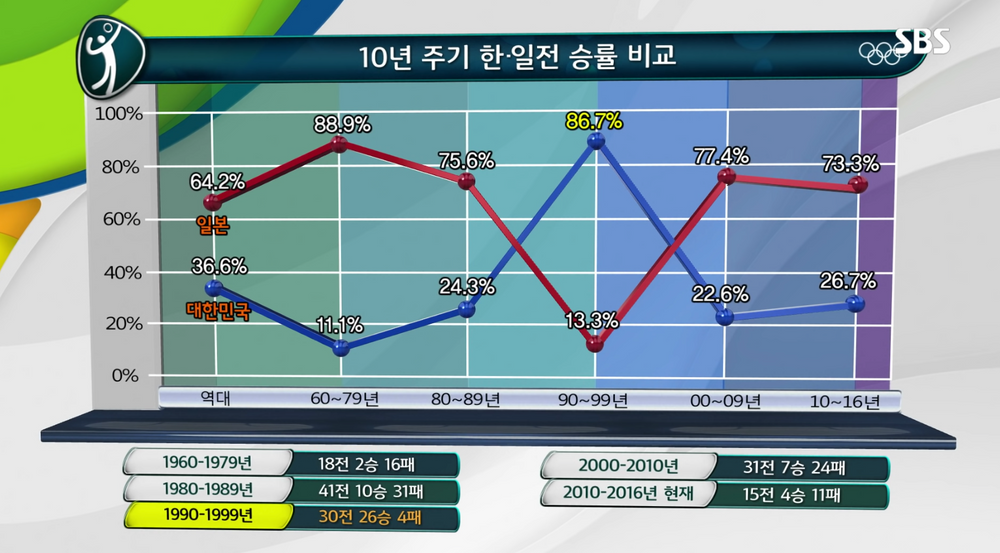 여자배구 한일전 상대전적