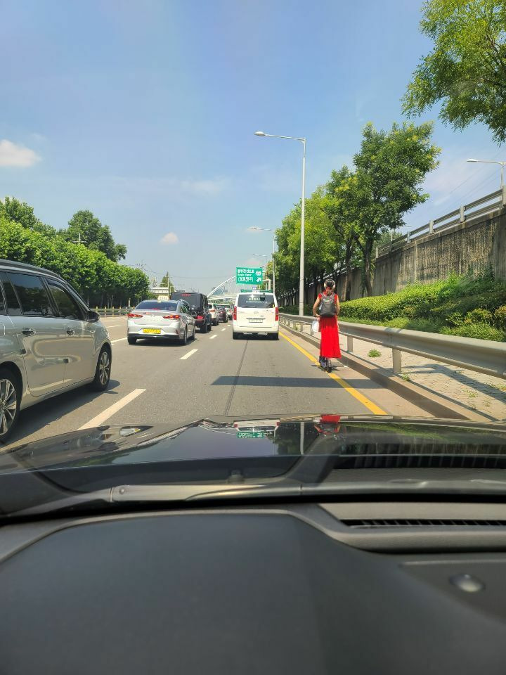 간선도로 전동킥보드녀