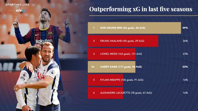 손흥민, 5대 리그 선수 중 '골 결정력' 압도적 1위