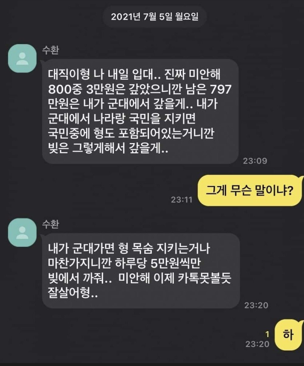 미안해.. 이제 못 볼 듯… 잘살어 형…