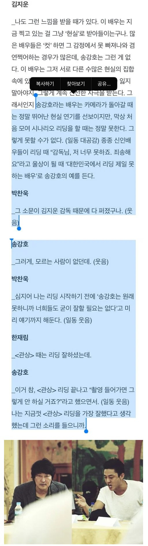 대본 리딩을 못하기로 소문난 배우