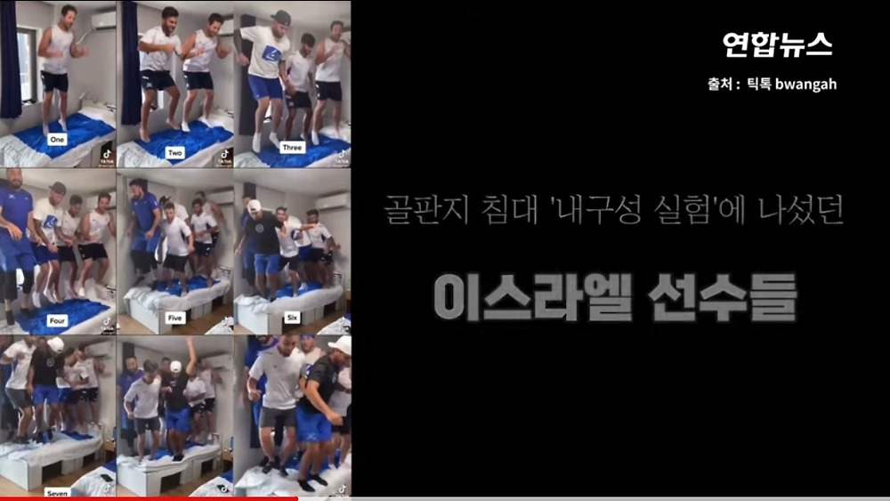 골판지 침대에서 점프실험 영상 올려서 사과하는 이스라엘 선수