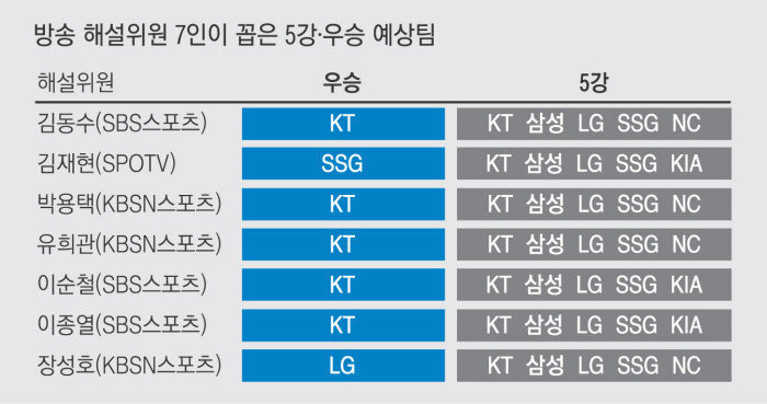 [프로야구] 해설위원 7인, 우승 5강팀 예상