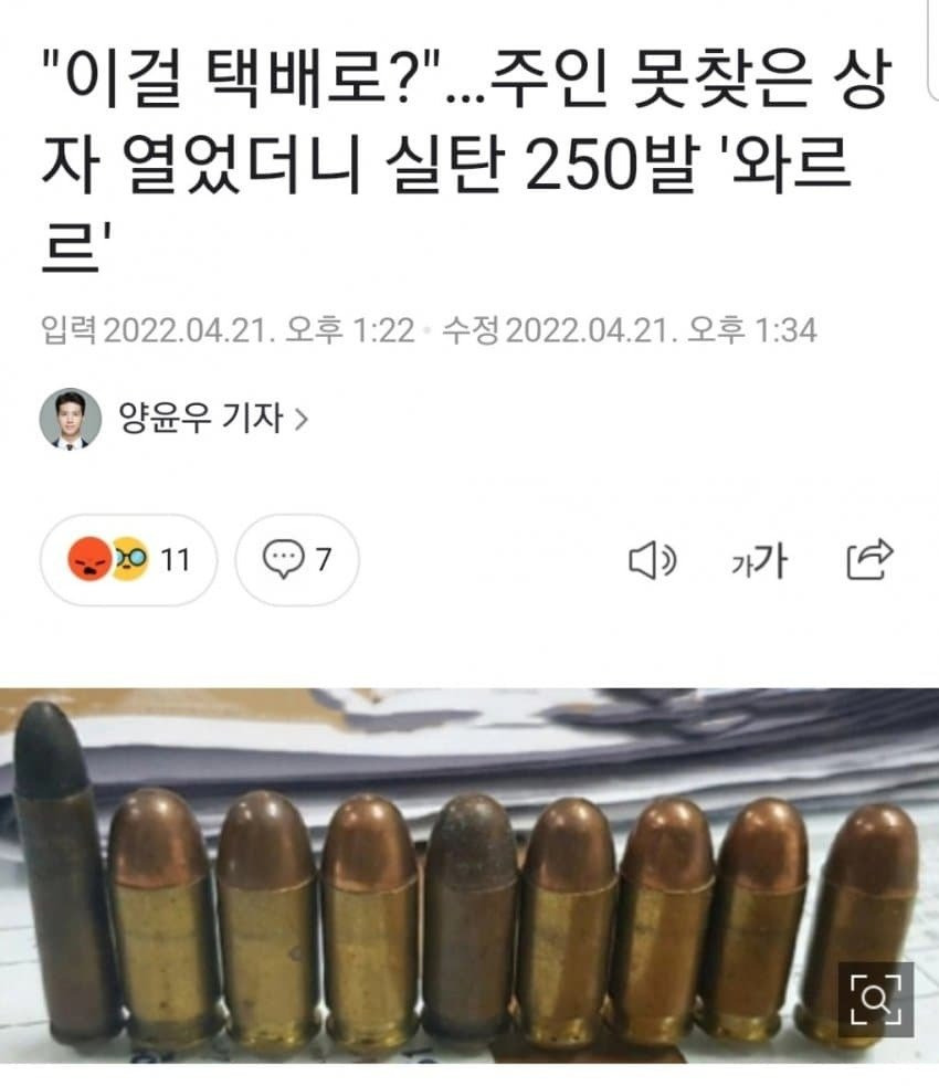 "이걸 택배로?" 주인 못찾은 상자 열었더니 실탄 250발 '와르르'