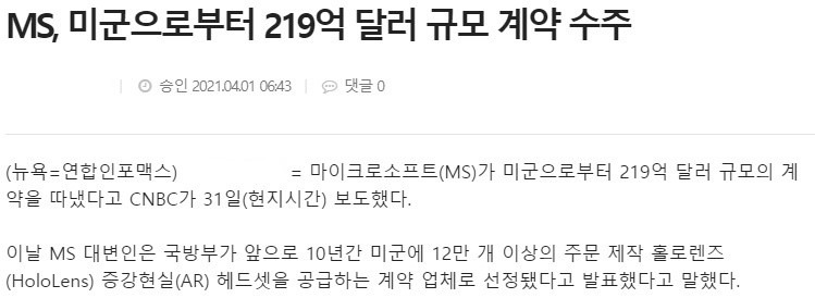현재 Microsoft가 미군에게 납품하는 헬멧 수듄