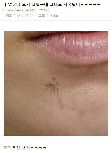 모기를 잡았는데 자국이 그대로 남음