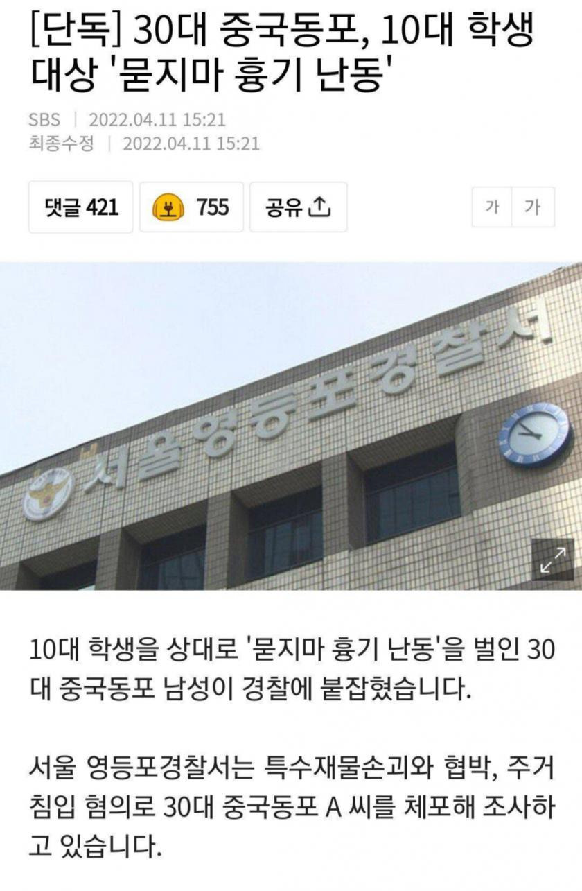 30대 중국동포, 10대 학생 대상 '묻지마 흉기 난동'