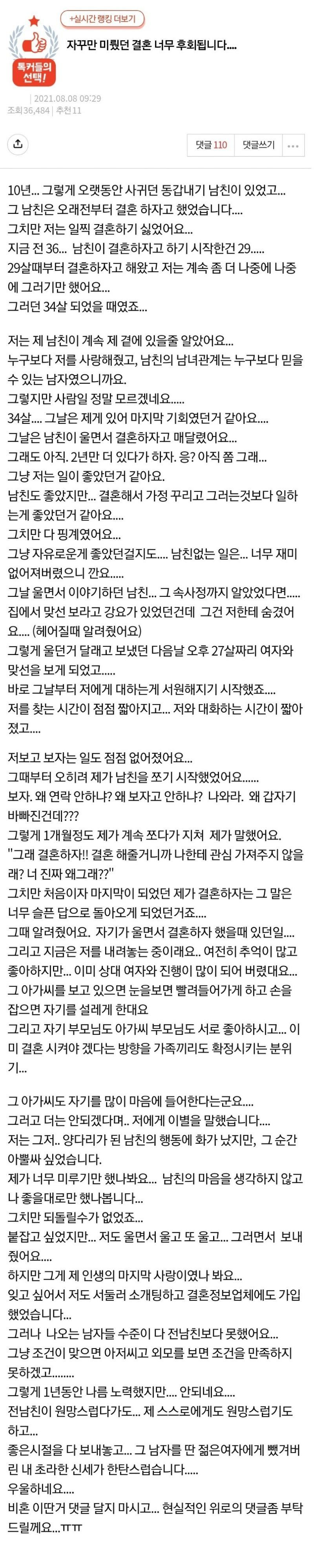 자꾸 미뤘던 결혼 너무 후회됩니다