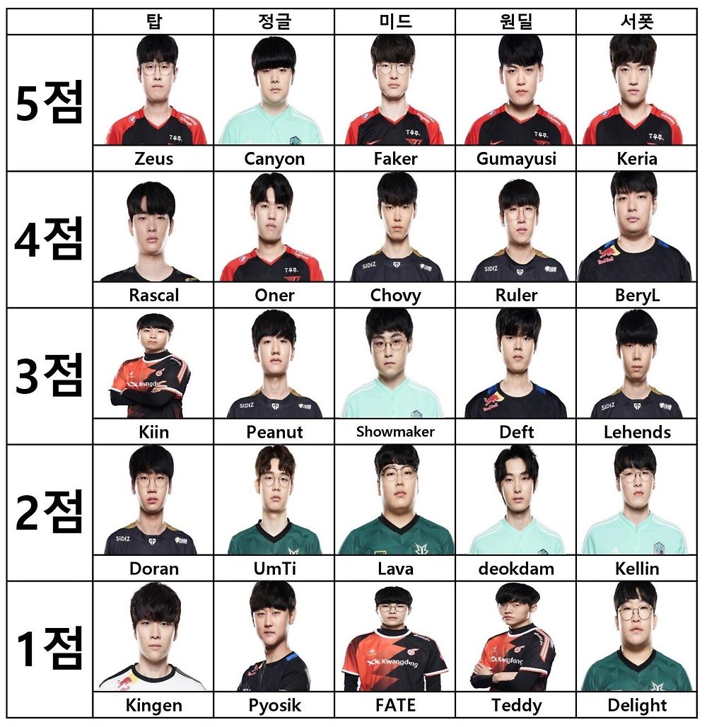[LCK] 15점으로 나만의 팀 만들기
