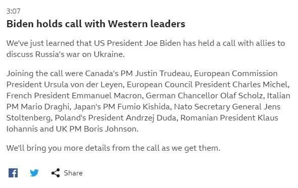 바이든, 서방국가 정상들과 통화 중 - 호주/한국 제외