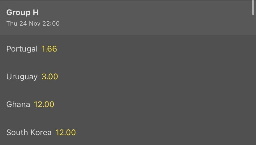 월드컵 H조 해외 배당률