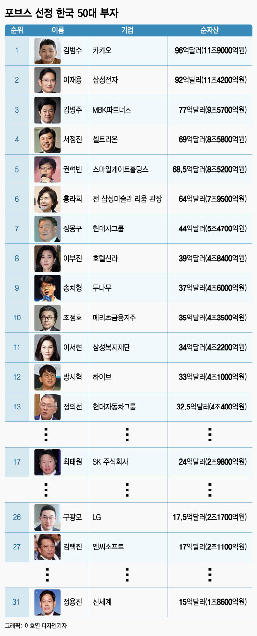포브스 선정 한국 50대 부자
