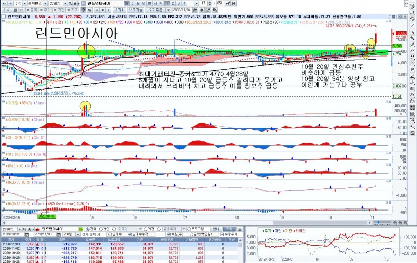 린드먼아시아 - 쓰리바닥치고 최대거래터진 종가를 지지후 급등